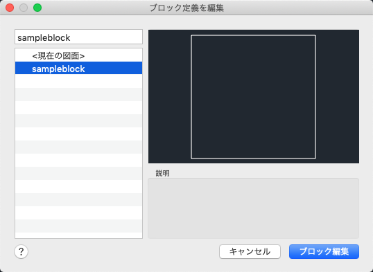 Displays the description of the selected block definition.