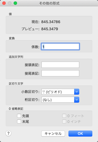 現在の値で使用する変換係数を指定します。既定は 1 で、変換されません。