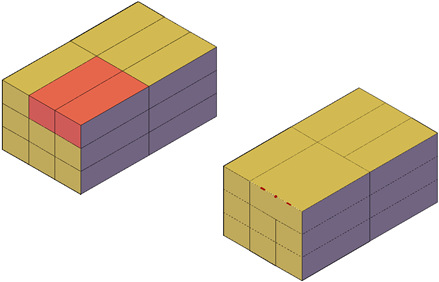 しかし、メッシュの押し出しでは、押し出された面と元のサーフェスとの間の隙間を閉じるために追加の面が挿入されます。メッシュの押し出しでは、隣接する面が 1 つの単位(結合)としてまたは別々に(結合解除)押し出されるように設定できます。