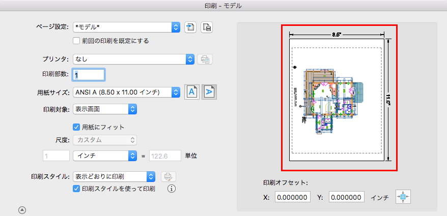 プレビュー領域を使用すると、印刷時に図面がどのように出力されるかを簡単に確認することができます。