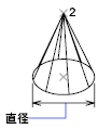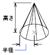 円錐の高さを、指定した 2 点間の距離に指定します。
