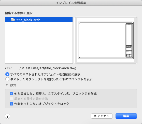 選択した参照のファイル場所が表示されます。選択した参照がブロックの場合は、パスは表示されません。
