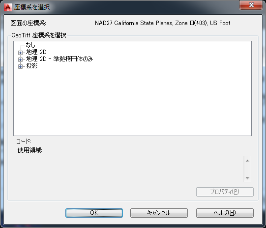 • 地理: 地理座標系の完全なリストを表示するには、ここをクリックします。