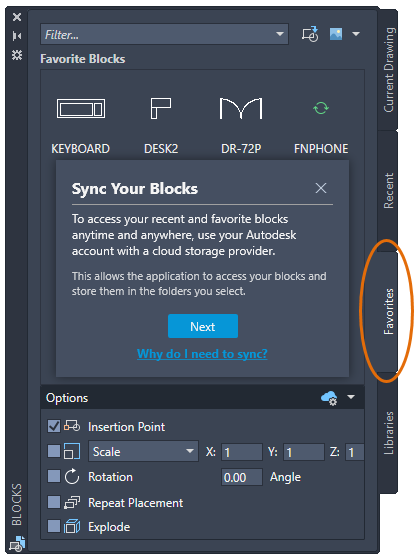 BLOCKSYNCFOLDER - 最近使用したブロックおよびお気に入りのブロックを保存するパスを設定します。