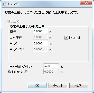最小削り残し量 - リマシニングする材料の最小量を指定します。