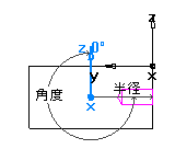 X 軸周りの割り出しの場合、X 座標は X 軸に沿って、Y 座標は垂直方向にフィーチャーを移動させます。