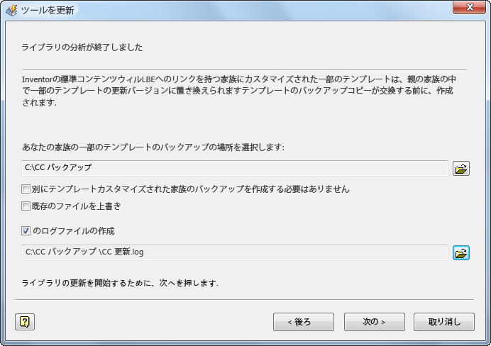 手順 3: [更新ツール]ダイアログ ボックスで、[次へ]をクリックしながら、カスタム ライブラリをマイグレーションするための手順を最後まで進めます。