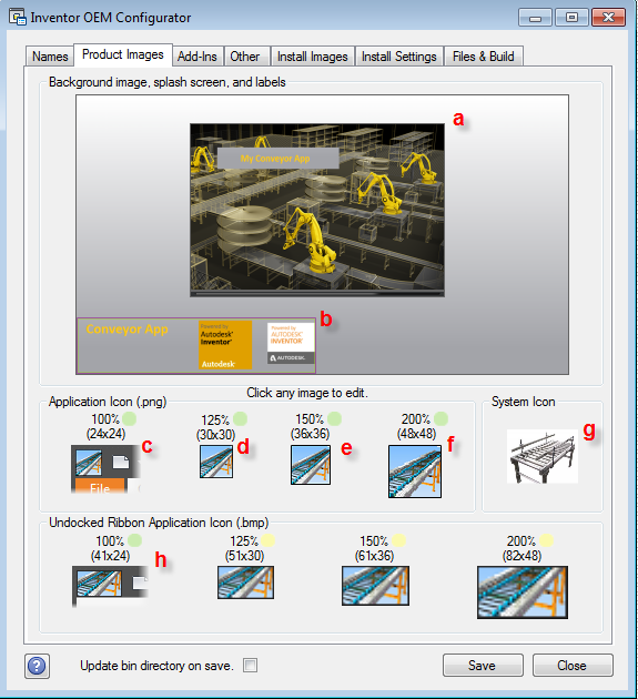 h. <SRC>\Conveyor\Configuration\BrandingResources\AppIcon_41x24_Default.bmp (イメージを指定しないと自動的に生成され、黄色のマークが付きます。)