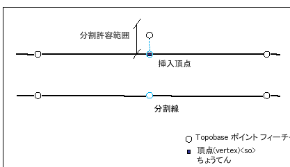 以前の点位置と新しい点位置の差が、分割の許容値を超える場合、点は挿入されず、メッセージが表示されます。分割の許容値は、アプリケーションのオプションで設定できます。