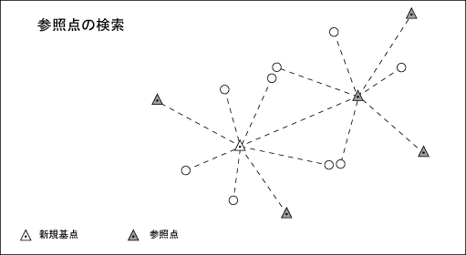 ベース ポイントとして分類済みの各ポイントに、参照ポイントを検索します。[フィールド コード リスト]を使用して、検索規則を定義します。たとえば、参照ポイントは、識別子または、位置によって検索されます。