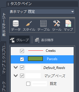 [Parcels]画層をクリックして[スタイル]をクリックします。