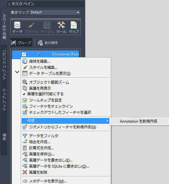 テキスト画層はデータ ストアであるため、変更内容を他のマップに適用するには、変更内容をチェック インします。