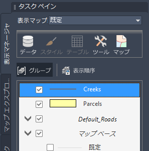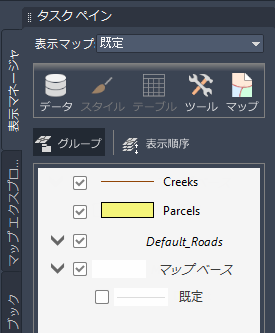 [表示マネージャ]タブに、現在のマップの画層が表示されます。