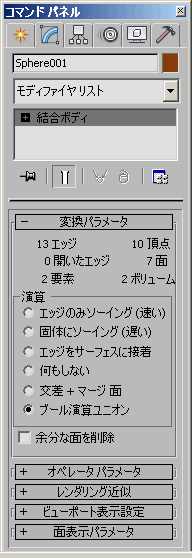 Join_Bodies - superclass: GeometryClass; super-superclass:node - 9:6 - classID: #(1669870298, 70329400)3ds Max 2011 以降では、Join_Bodies オブジェクトを使用してソリッド ボディを結合できます。