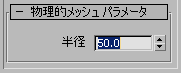 <MassFX_RBody>.meshRadius Float default: 0.01 -- float; None半径スピナーのトラック値を公開します。特定のメッシュのメッシュ半径値を取得および設定するには、次で説明するメソッドを使用する必要があります。
