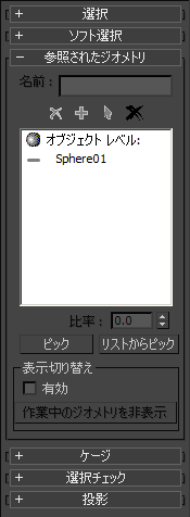 関連するメソッドについては、「Projection モディファイヤ - [選択]ロールアウト メソッド」を参照してください。