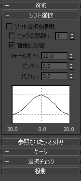 <Projection>.softselFalloff Float default:20.0 -- world units; Falloffソフト選択の[フォールオフ]値を取得/設定します。