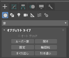 <SlidingWindow>.height Float default: 0.0 -- animatable; float<SlidingWindow>.width Float default: 0.0 -- animatable; float<SlidingWindow>.depth Float default: 0.0 -- animatable; float<SlidingWindow>.Horizontal_Frame_Width Float default: 2.0 -- animatable; float<SlidingWindow>.Vertical_Frame_Width Float default: 2.0 -- animatable; float<SlidingWindow>.Frame_Thickness Float default: 0.5 -- animatable; float<SlidingWindow>.Glazing_Thickness Float default: 0.25 -- animatable; float<SlidingWindow>.Rail_Width Float default: 1.0 -- animatable; float<SlidingWindow>.Percent_Open Integer default: 0 -- animatable; integer<SlidingWindow>.Generate_Mapping_Coords BooleanClass default: false<SlidingWindow>.Number_of_Panels_Horizontally Integer default: 1 -- integer<SlidingWindow>.Number_of_Panels_Vertically Integer default: 1 -- integer<SlidingWindow>.Chamfered_Profile BooleanClass default: false<SlidingWindow>.Hung BooleanClass default: trueインタフェース: