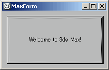 theFrm = dotNetObject "MaxCustomControls.MaxForm" theFrm.width = 225 theFrm.height = 145 theFrm.text = "MaxForm" theBtn = dotNetObject "System.Windows.Forms.Button" theBtn.text = "Welcome to 3ds Max!" theBtn.width = 200 theBtn.height = 100 theBtn.location = dotNetObject "System.Drawing.Point" 10 10 theFrm.controls.add theBtn thePtr = DotNetObject "System.IntPtr" (windows.getMAXHWND()) -- Win32HandleWrapper was removed in Max 2014: -- theHwnd = DotNetObject "MaxCustomControls.Win32HandleWrapper" thePtr -- Use System.Windows.Forms.NativeWindow.FromHandle instead: theHwnd = (dotNetObject "System.Windows.Forms.NativeWindow").FromHandle thePtr theFrm.Show(theHwnd)