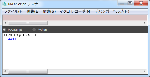 MAXScript はこの計算結果を返します。外部の計算プログラムをロードする必要もなく、急な計算が手軽に処理できます。