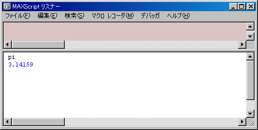 MAXScript は、いくつかの数学定数も認識します。pi と入力します。