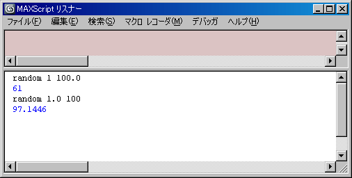 文字列のように数字そのものを入力するだけで、MAXScript はこれをエコーバックして数字として評価し、その値を表示します。