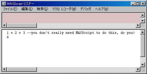 ガイドやコンテキストを提供するために、スクリプト中にコメントを入れる場合にも有用です。MAXScript ではコメントの前に 2 つのハイフン「--」を入れ、その後ろにコメントを入れることができます。MAXScript は、2 つのハイフンに達すると、その行の残りの部分の評価を停止します。