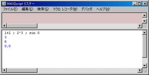 また、MAXScript では、複数のステートメントと式を 1 行に組み合わせることができます。以下のように、ステートメントまたは式は「;」で区切られます。
