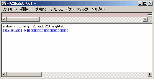 MAXScript からボックス オブジェクトの名前とボックスの位置が返されます。