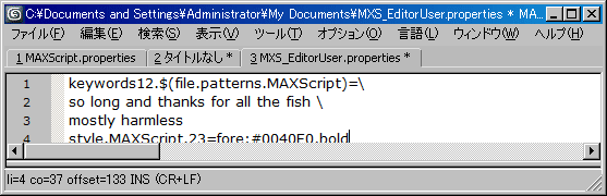 [Ctrl]+[S]を押して、MAXScript.properties ファイルを保存します。