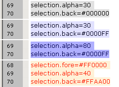 whitespace.back (MAXScript default: not set)すべての可視空白を表示するためのカラーを設定します。この設定は現在のレキサーによって適用されているすべてのスタイルを変更します。