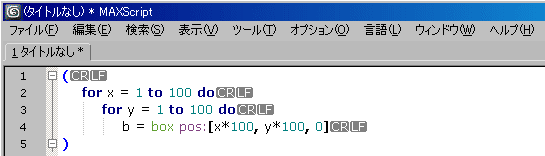 view.eol (MAXScript default: not set)このプロパティを 1 に設定すると、エディタは、行末を示す文字を表示します。これは、[CR]、[LF]、または [CR] [LF] に類似しています。