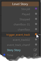 This adds the event track parameters to the Story node, so you can then connect the event output to trigger something else.