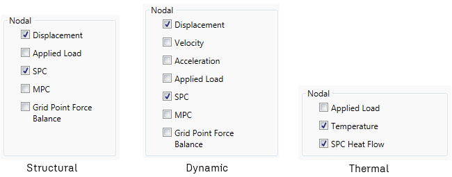 - [単点拘束力(SPC)]: 節点の単一点拘束(SPC)の出力をコントロールします。
