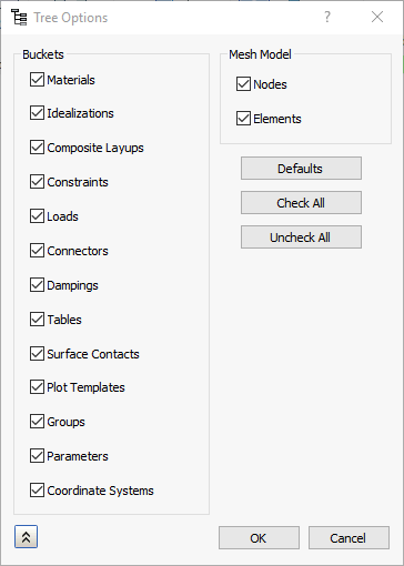 [ツリー オプション]を使用して、モデル ツリーから表示を希望しない項目を削除します。