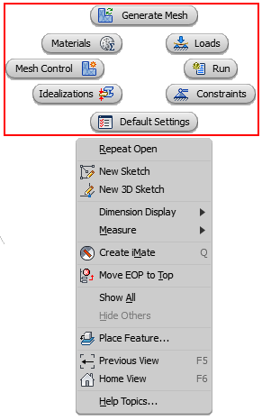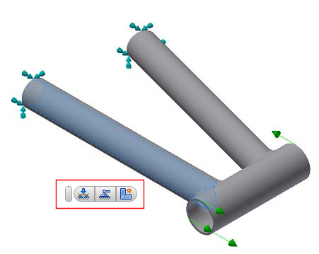 任意のエンティティ(スケッチ、エッジ、サーフェスなど)を選択しているとき、キャンバスでフローティング ツールバーが使用できるようになりました。このツールバーを使用することにより、新しい荷重、拘束、メッシュ コントロールを直ちに定義することができ、適切なダイアログ ボックスが自動的に表示されます。