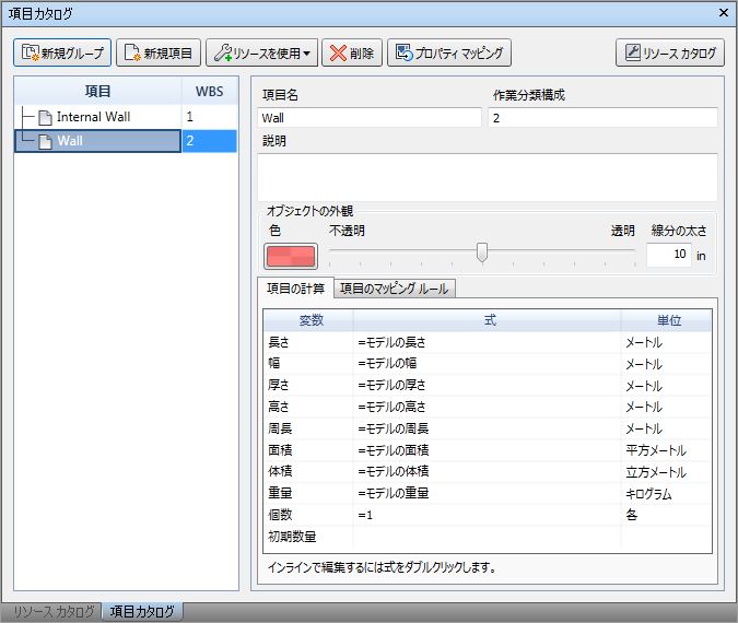 2D 数量拾いツールを使用すると、平面図または他のワークシートで直線ジオメトリの数量拾いを行うことができます。マークアップは Quantification ワークブックにオブジェクトとして表示され、面積、周長、長さなどのプロパティが示されます。線形マークアップをトレースして壁または部屋の周長を測定したり、領域ツールを使用して床面積などサーフェスの範囲を記録することができます。また、2D シートにマークアップ ピンを配置して個数の数量拾いを実行することもできます。[項目カタログ]で色、不透明度を変更し、数量拾いの線分の太さを変化させて、数量拾いの外観を管理します。数量拾いの描画が完了したら、Navisworks の印刷オプションを使用して、マークアップを含む 2D シートを印刷することができます。