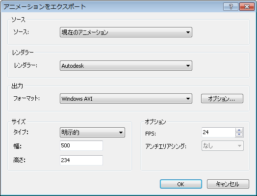 3. [アニメーションをエクスポート]ダイアログ ボックスの残りのボックスを設定し、[OK]をクリックします。詳細については、「[アニメーションをエクスポート]ダイアログ ボックス」を参照してください。