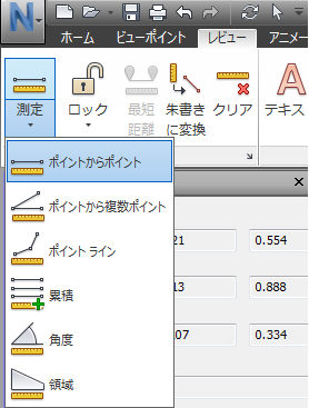 測定ツールを使用すると、モデル内のアイテム上の点間の測定を実行できます。測定は、すべて表示単位で行われます。測定ツールは[レビュー]タブ [測定]パネルから使用できます。