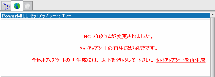 PowerMill はセットアップシートの更新が必要という警告が記載された HTML ページを作成します。