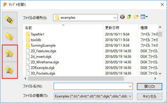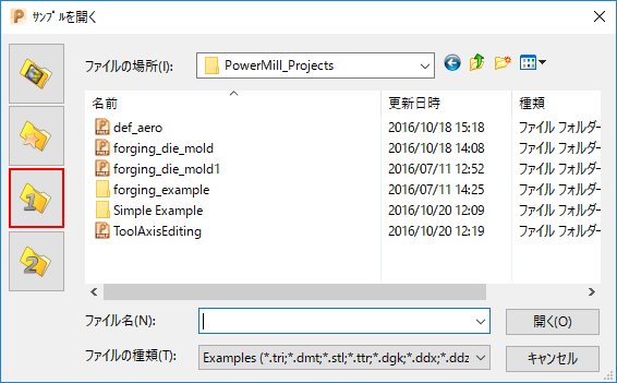 この例では、サンプルを開く ダイアログのユーザー定義ディレクトリボタンのカスタマイズ方法を説明します。
