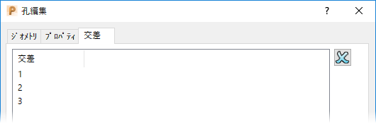 をクリックし、交差を削除します。交差 1 が削除され、残りの交差である 2 と 3 が、1 と 2 に変更されます。