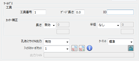 出力ファイル - 出力ファイルの命名規則を指定します。ファイル名に 変数 を入力し、NC プログラムの書出し時に実行することができます。