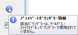 プライベートバウンダリー情報 - このボタン上でカーソルを移動すると、プライベートバウンダリーに関する情報が表示されます。たとえば、ツールパスで使用されていないバウンダリーの