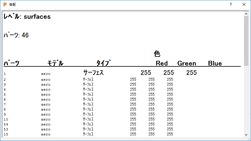 [プロパティ] アイテムを使用し、選択したレベル、セット、またはクランプに使用されているコンポーネントに関する情報を表示します。