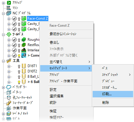 セットアップ シートを印刷すると、PowerMill プロジェクト フォルダーの SetupSheets_files/project_sheets サブフォルダー下にある print.html という単一ファイルに書込まれます。