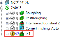 ボタンをクリックし、バックグラウンド計算の状態を確認することができます。閉じる をクリックします。バックグラウンド計算が終了すると、ステータスバー、および、エクスプローラーのツールパスの バックグラウンド計算 ボタンが