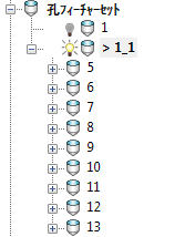 エクスプローラーで個別の孔フィーチャーの順序を表示、または、方向表示 を選択し、孔フィーチャーのソートの効果を確認することができます。
