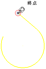 注: このモードでは、単一セグメントの選択のみが可能です。 カーブ上のポイントをクリックすると、当該ポイントまでトリムされます。 カーブ上にはないポイントをクリックすると、カーブ上の最近接ポイントまでトリムされます。 円を作成するために、円弧を延長することができます。