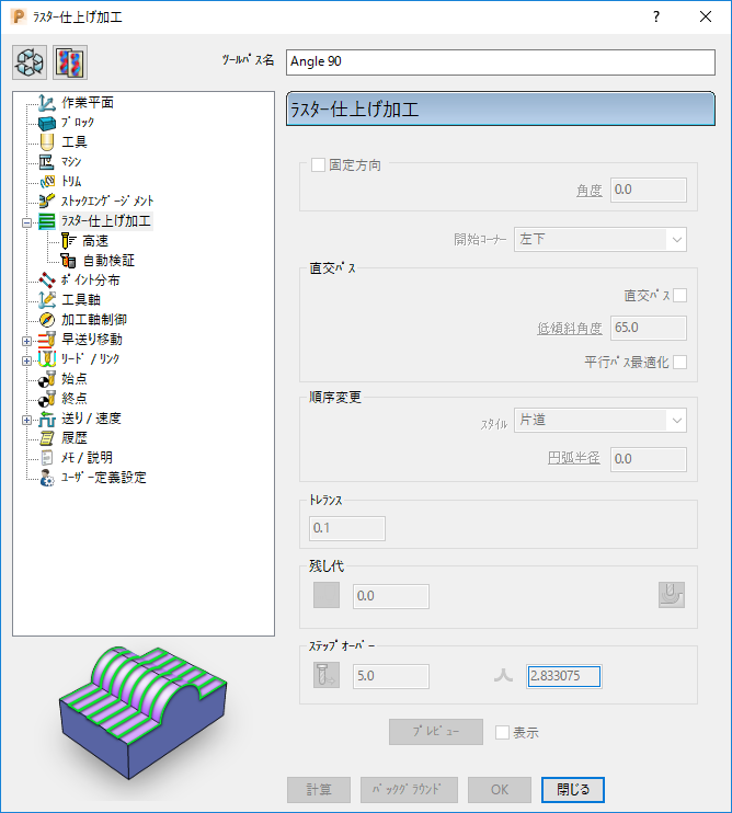 ラスター仕上げ加工ツールパスでは、ラスター仕上げ加工ダイアログが表示されます。